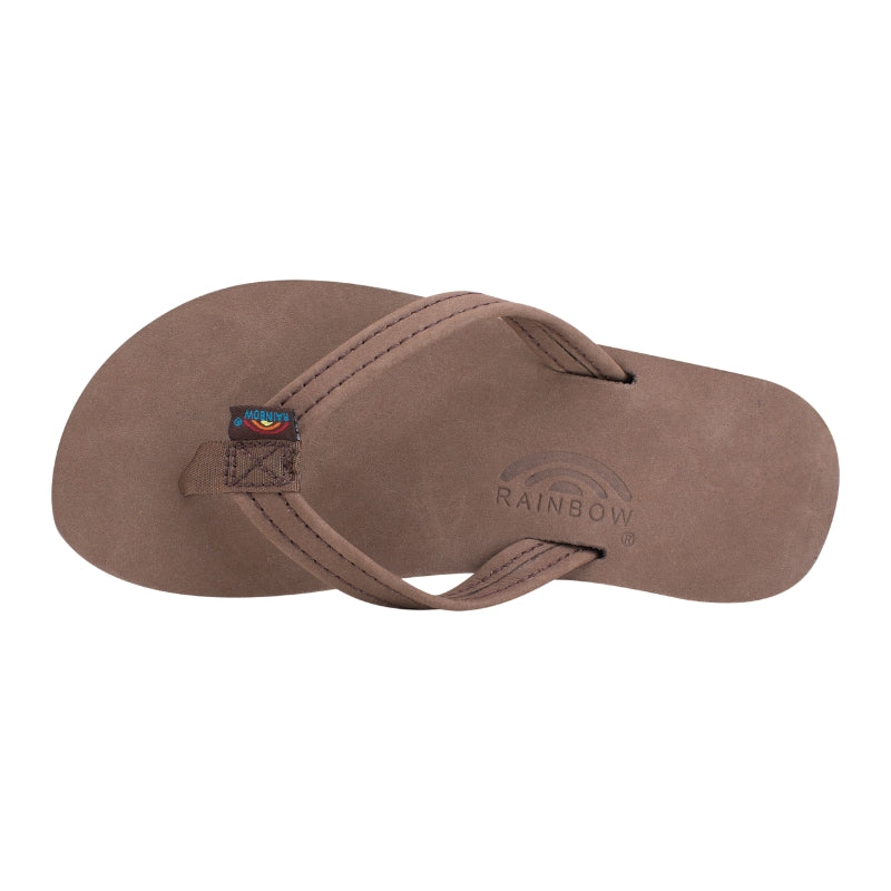 Our kids Premier Leather on a non-slip Rainbow® bottom with a single layer but no arch, and a feminine 1/2" narrow strap. Now the girls can be just like their Big Sis!