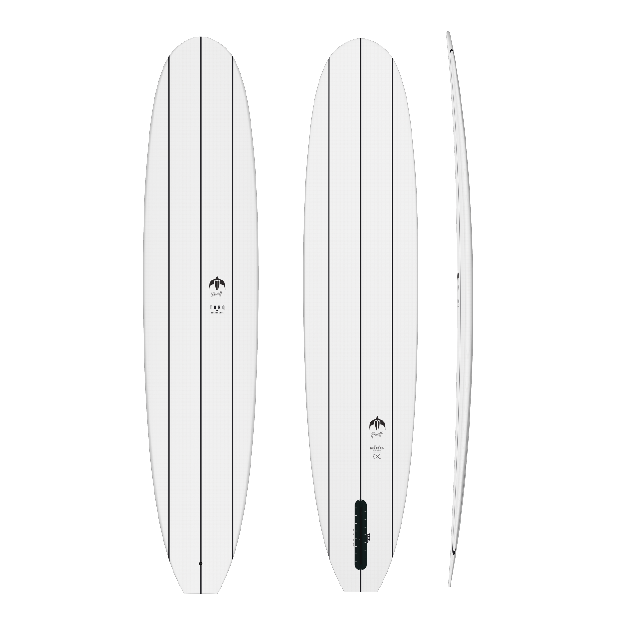 For lengths of 8'6 and over Torq has introduced a T-stringer and carbon stringer to the deck and bottom for a new level of torsional strength. The Torq longboard technology is incredibly strong, light and responsive.